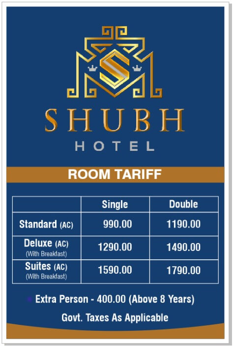- Extra Person - 400.00 (Above 8 Yrs.)